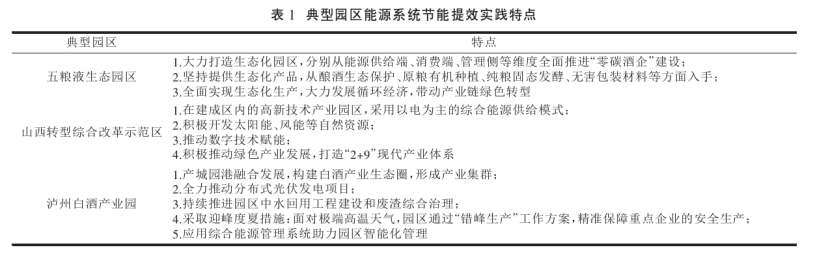 園區(qū)在推動(dòng)我國(guó)實(shí)體經(jīng)濟(jì)發(fā)展和城鎮(zhèn)化發(fā)展中發(fā)揮了關(guān)鍵作用,是支撐制造強(qiáng)國(guó)戰(zhàn)略的主戰(zhàn)場(chǎng)。有研究表明,園區(qū)二氧化碳排放量約占全國(guó)總排放量的31%[4],園區(qū)是資源能源消耗最集中的地方。現(xiàn)階段,為了節(jié)約能源,保護(hù)環(huán)境,我國(guó)各級(jí)園區(qū)都在持續(xù)推動(dòng)綠色低碳發(fā)展。田金平等研究指出我國(guó)工業(yè)園區(qū)節(jié)能提效實(shí)踐創(chuàng)新主要體現(xiàn)在以下5個(gè)方面: ①聚焦重點(diǎn)領(lǐng)域,全過(guò)程系統(tǒng)性推進(jìn)節(jié)能工作。②集中式能源基礎(chǔ)設(shè)施升級(jí)改造,多樣化開(kāi)發(fā)利用余熱、 余壓和能量多級(jí)利用。③積極利用可再生能源,推進(jìn)能源結(jié)構(gòu)轉(zhuǎn)型升級(jí)。④積極開(kāi)展智慧能源探索,實(shí)現(xiàn)能源全過(guò)程精細(xì)化管理。⑤建立健全能源管理體系。表1為典型園區(qū)能源系統(tǒng)節(jié)能提效實(shí)踐特點(diǎn)。