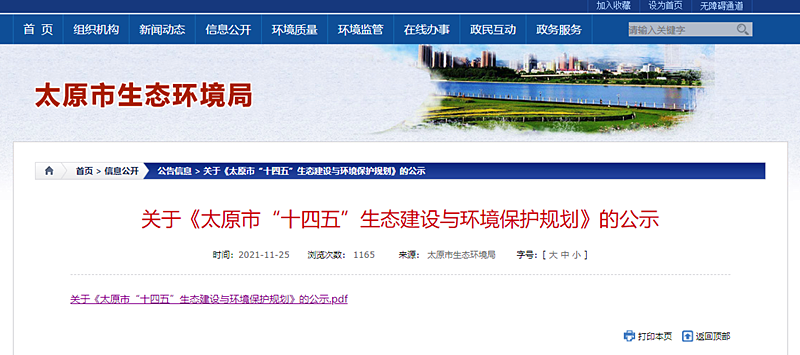 文章來源:地大熱能 發布作者:太原市生態環境局 發表時間:2021-12-22 08:45:06瀏覽次數:4055
