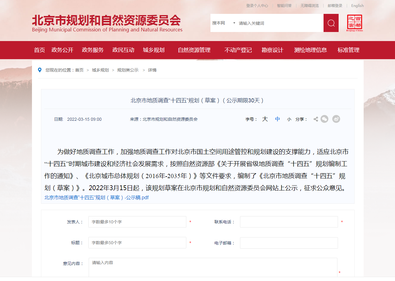 地大熱能地熱+多能互補網訊:《北京市地質調查“十四五”規劃(2021—2025年)(草案)》(以下簡稱《草案》)3月15日起在市規劃自然資源委網站公示,聽取公眾意見,公示期30天?!?a href="http://m.wellcasting.com/t/規劃.html" >規劃》提出,北京市將率先對首都功能核心區地熱能等開展綜合地質調查評價,提供地質安全保障。社會公眾對該《規劃》如有意見建議,可在4月14日前登錄北京市規劃自然資源委網站留言。