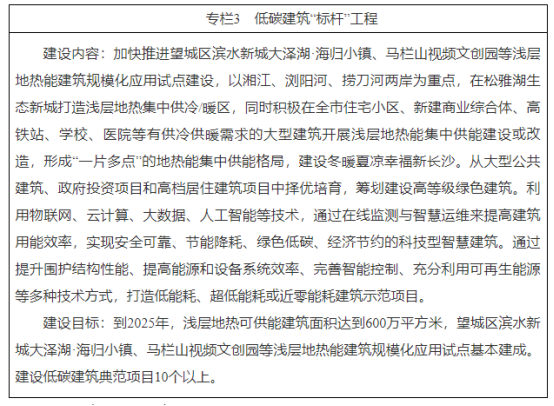 地方政策長沙市碳達峰實施方案:大力推廣地熱能在建筑施工建設和運行中的應用