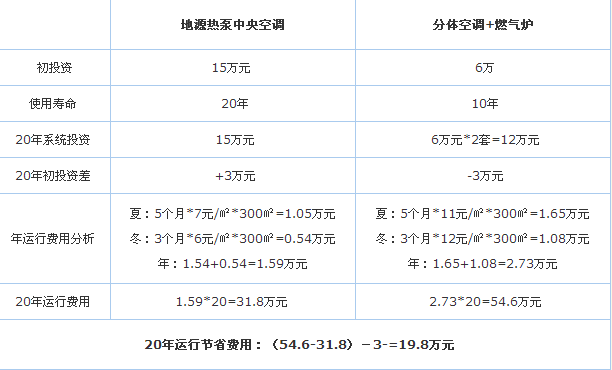 地大熱能地源熱泵事業部認為,從長產業鏈的角度來看,在同等條件下,采用地源熱泵系統的建筑物能夠減少維護費用。地源熱泵非常耐用,它的機械運動部件非常少,所有的部件不是埋在地下便是安裝在室內,從而避免了室外的惡劣氣候,其地下部分可保證50年,地上部分可保證30年,因此別墅地源熱泵是免維護空調,節省了維護費用,使用戶的投資在3年左右即可收回。
