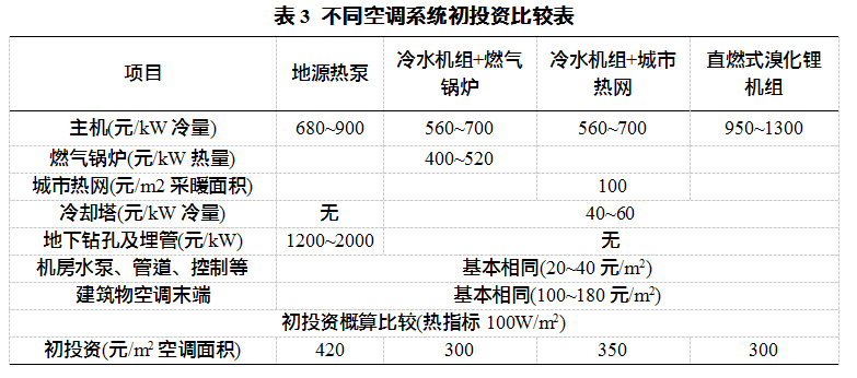 3)不同空調(diào)系統(tǒng)初投資費用對比