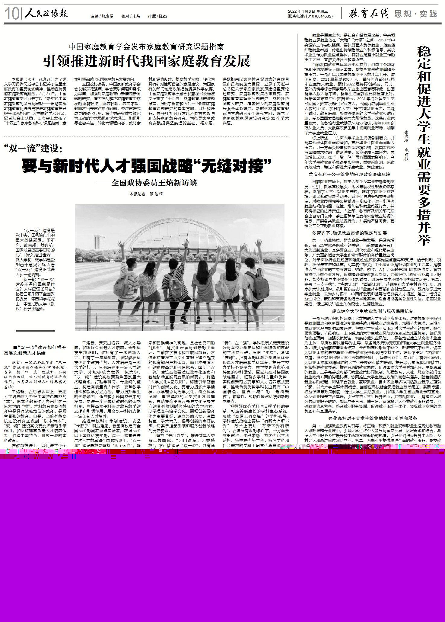 王焰新:要突出培養一流人才導向,加強拔尖創新人才培養。全部科技史都證明,誰擁有了一流創新人才、擁有了一流科學家,誰就能在科技創新中占據優勢。人才培養是一流大學的核心,只有培養出一流人才的大學,才能夠成為世界一流大學?!半p一流”建設高校要聚焦國家重大戰略需求,打破學科間、專業間的壁壘,構建高質量育人體系,變革教學組織和教學方式方法,著力提升學生的創新能力,適應和引領國家未來的發展。要進一步完善科教融合的體制機制,發揮高水平科研對教育教學的支撐和引領作用,用高水平科研支撐一流創新人才培養。