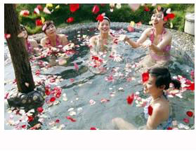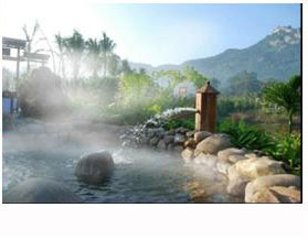 河南省欒川九龍山溫泉風景 九龍山溫泉泉水恒溫69.5℃,時流量56噸,水中富含鉀、鎂、鈣、鍶、鋰等27種礦物質,微含惰性氣體氡和放射性元素鐳,對風濕、類風濕、心腦血管病后遺癥及婦科、皮膚科常見病的浴療效果顯著,被譽為中原第一泉。