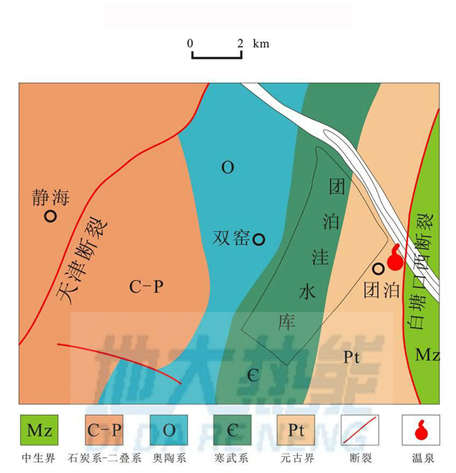 天津市團泊湖溫泉成礦機制![]() ![]() 天津市團泊湖溫泉形成機制圖 |